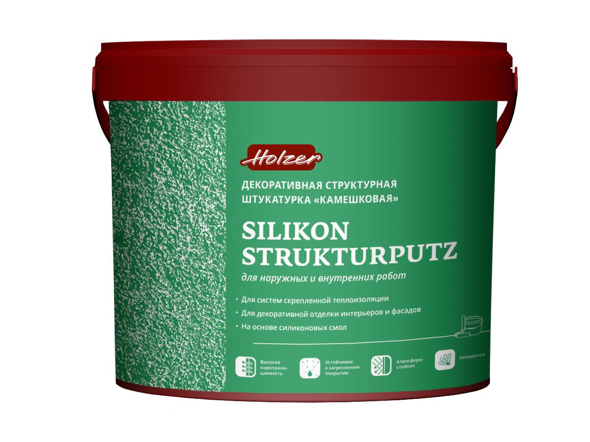 Готовая к применению структурная штукатурка на основе силиконовых смол и синтетических полимеров для создания декоративных покрытий с зернистой и бороздчатой фактурой внутри и снаружи помещений.