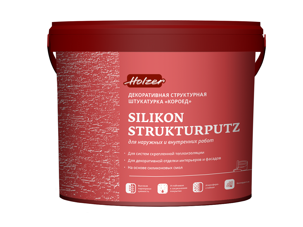 Готовая к применению структурная штукатурка на основе силиконовых смол и синтетических полимеров для создания декоративных покрытий с зернистой и бороздчатой фактурой внутри и снаружи помещений.