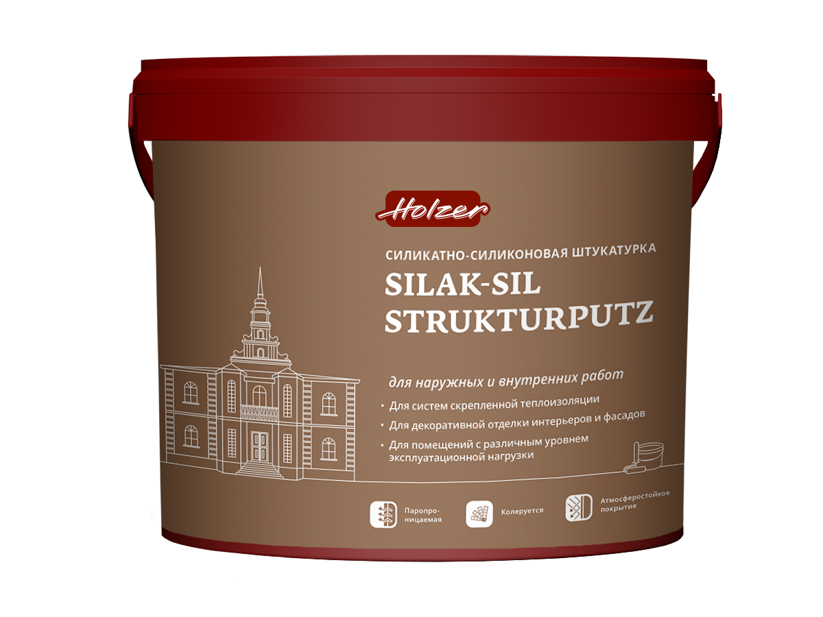 Готовая к применению декоративная штукатурка на основе водной дисперсии силиката калия, силиконовых смол и модифицированных полимеров.