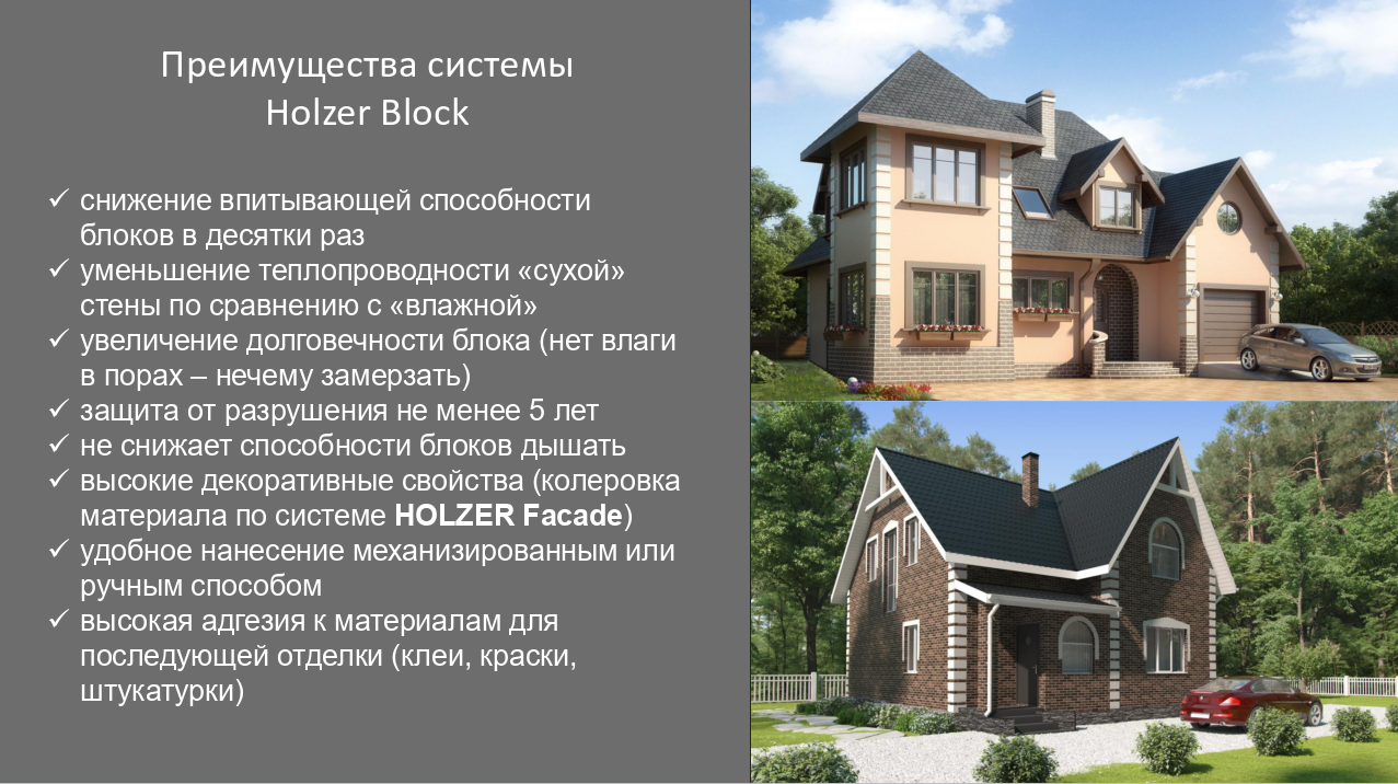 *Кстати. HOLZER BLOCK будет великолепно служить на любых минеральных основаниях, не только на высокопористых.