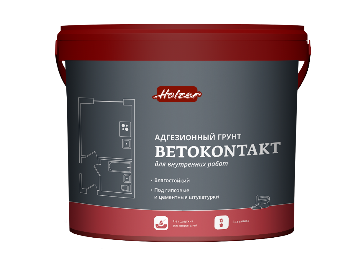 Адгезионный грунт Хольцер Бетоконтакт с индикацией нанесения на основе водной дисперсии акрилового сополимера. Не содержит органических растворителей. Готов к применению.