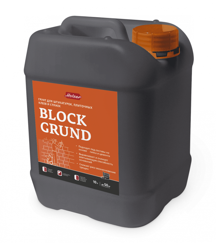 Готовая к применению грунтовка Хольцер Блок Грунт для выравнивания и снижения впитывающей способности минеральных оснований. Для внутренних и наружных работ. Допускается разбавление чистой водой в соотношении 1:1 при использовании на слабо пористых основаниях.
