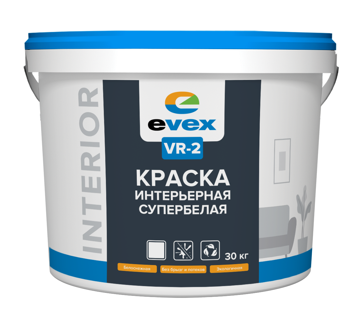 Краска ЭВЕКС ВР-2 предназначена для окрашивания стен и потолков внутри помещений с нормальным уровнем влажности.