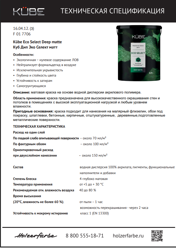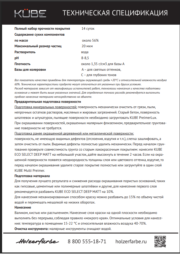 Kube DEEP MATTE глубоко матовая интерьерная краска