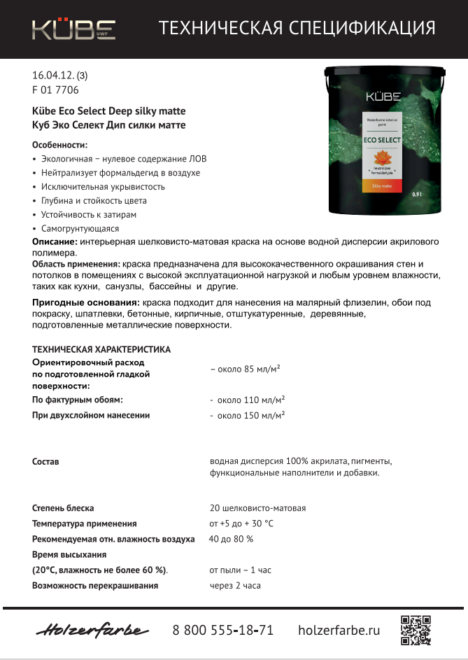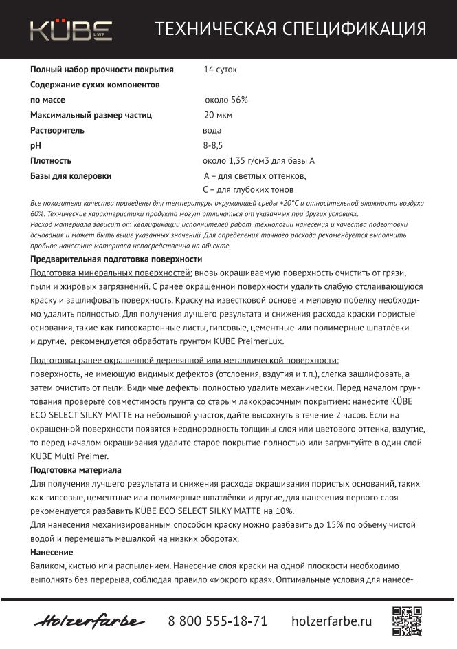 Kube SILKY MATTE шелковисто матовая интерьерная краска
