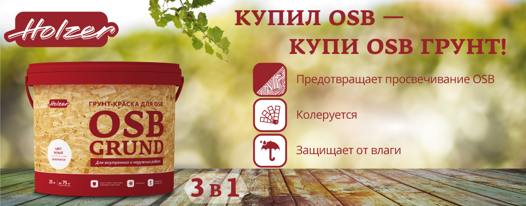 Грунт-краска грунт Хольцер ОСБ (Holzer OSB Grund) создаёт на поверхности OSB плиты эластичную, атмосфероустойчивую лакокрасочную плёнку с повышенными адгезионными свойствами.