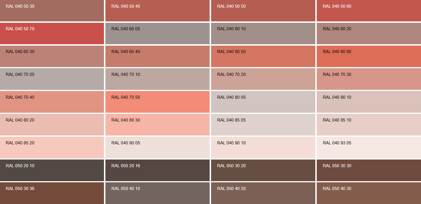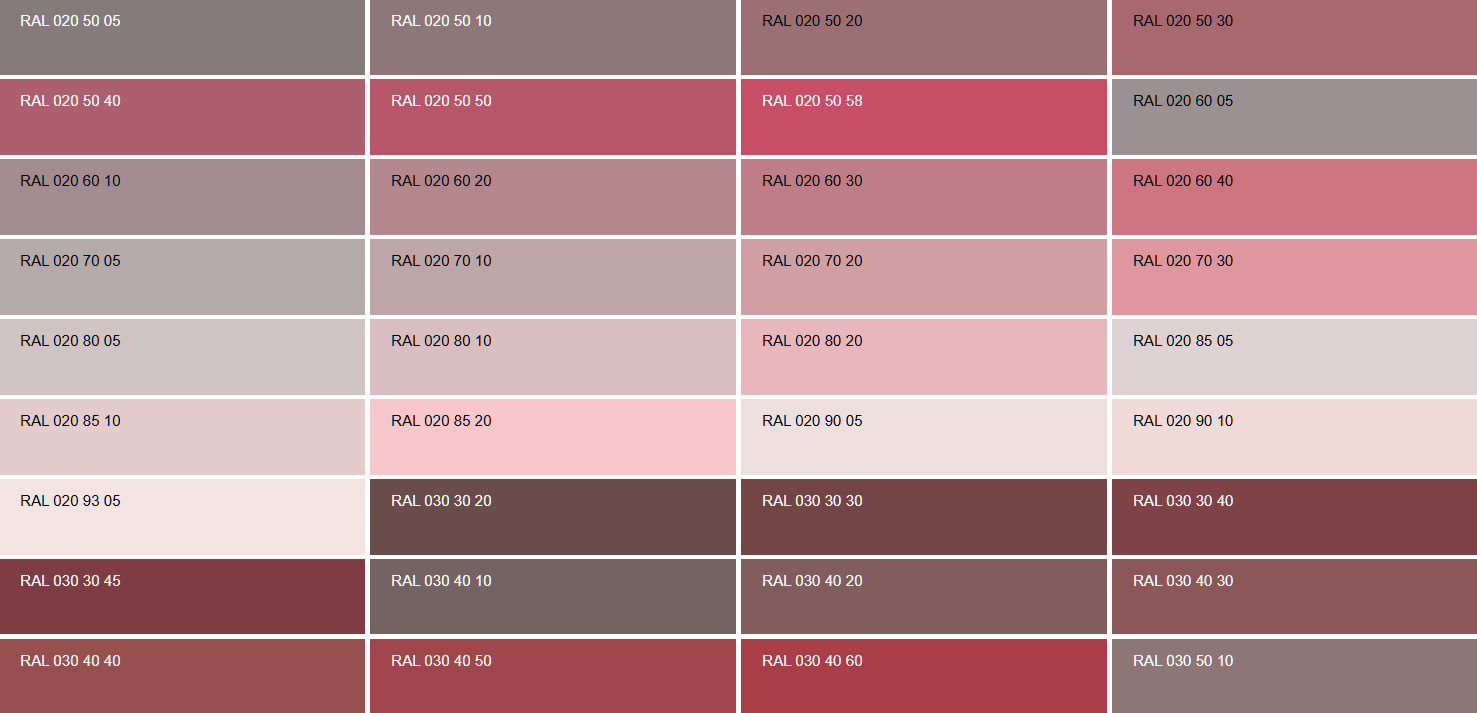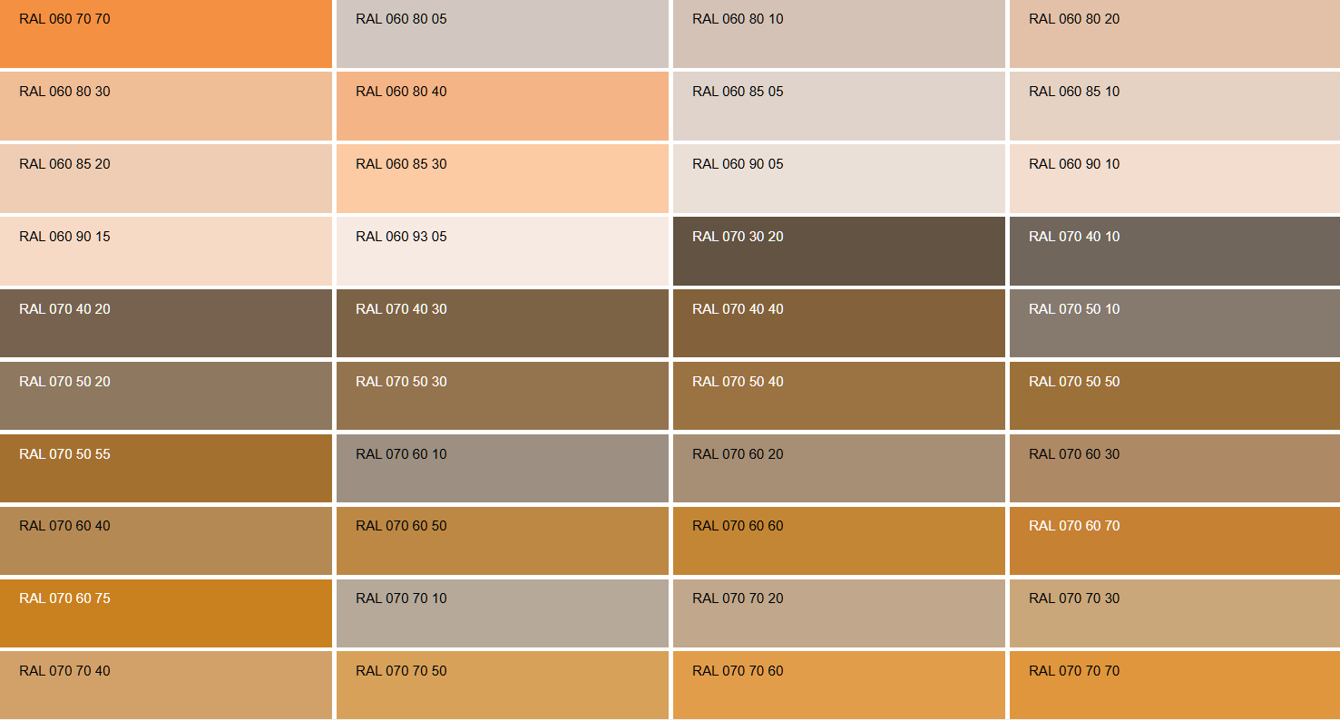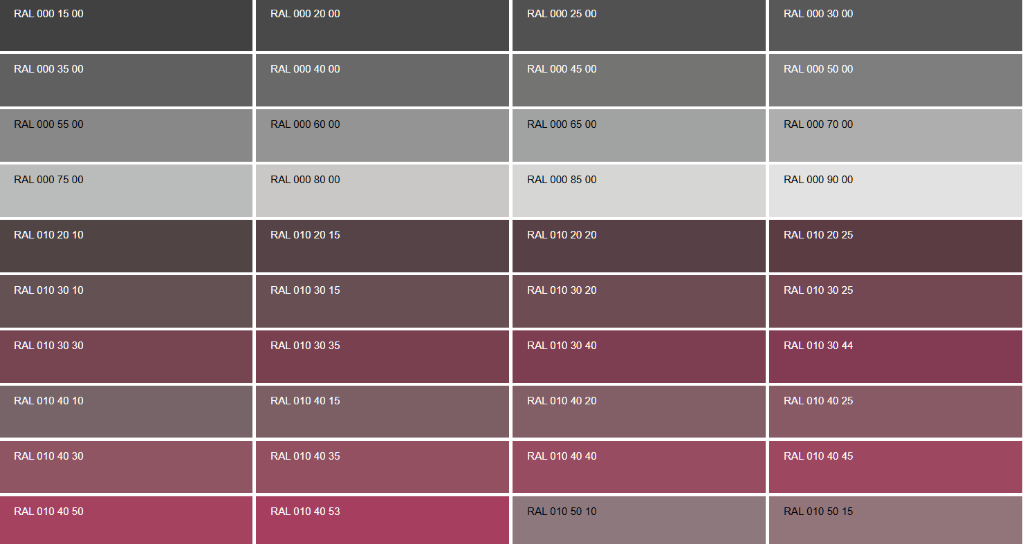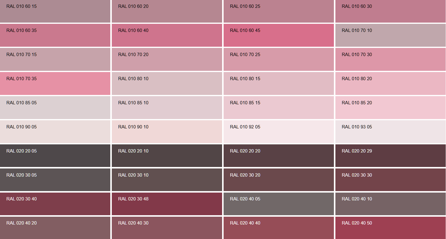 Для удобства работы архитекторов и дизайнеров также предлагаем вашему вниманию таблицу условного соответствия цветов палитры RAL DESIGN