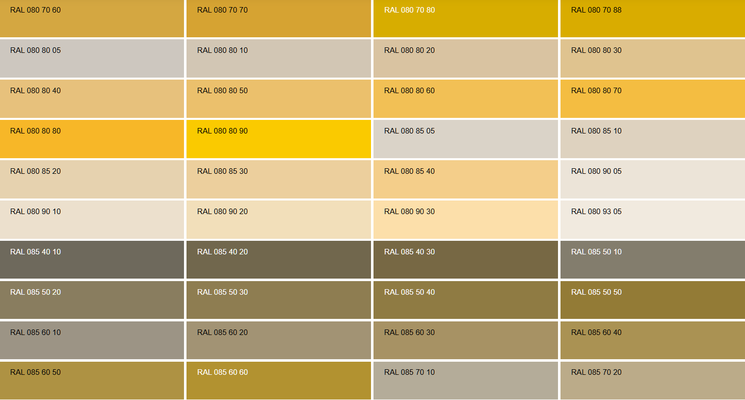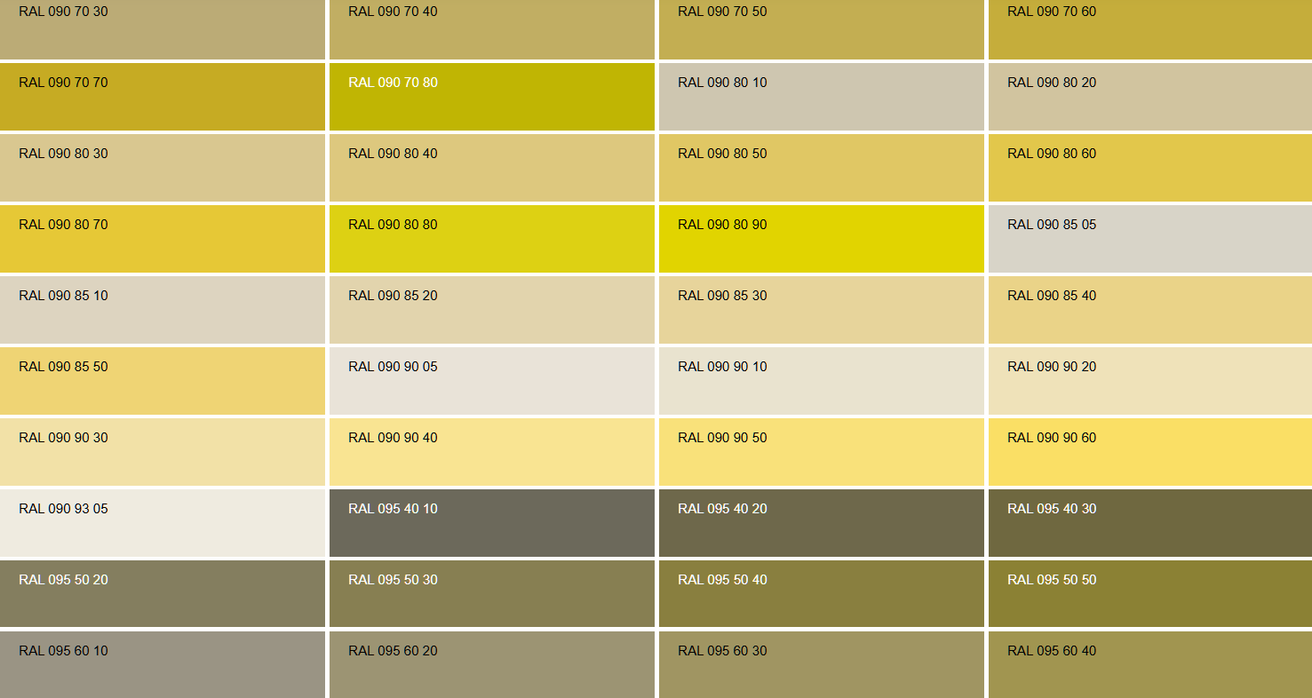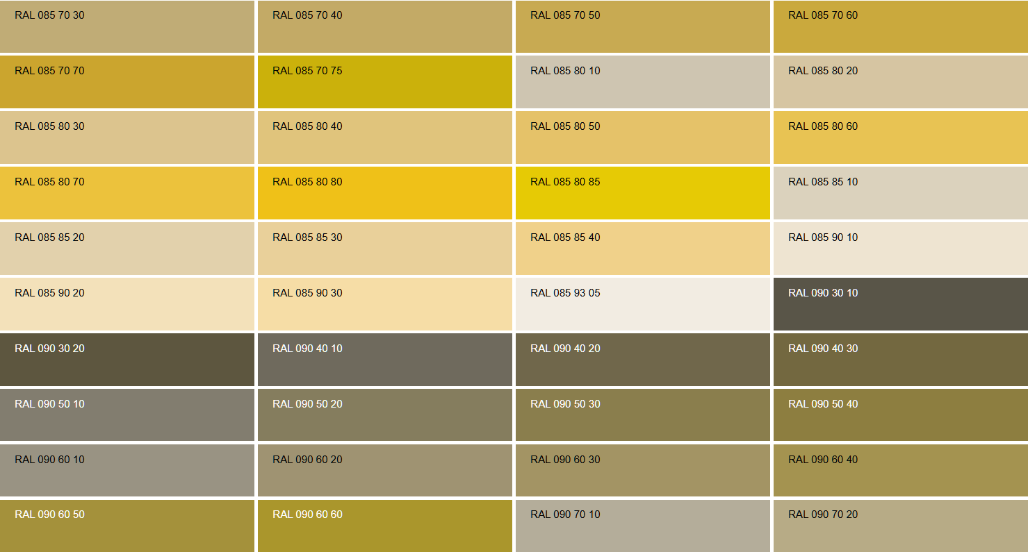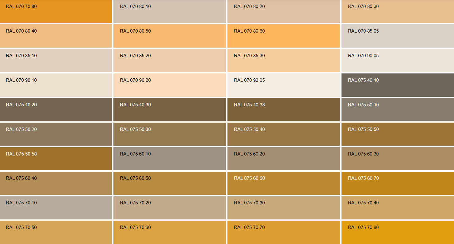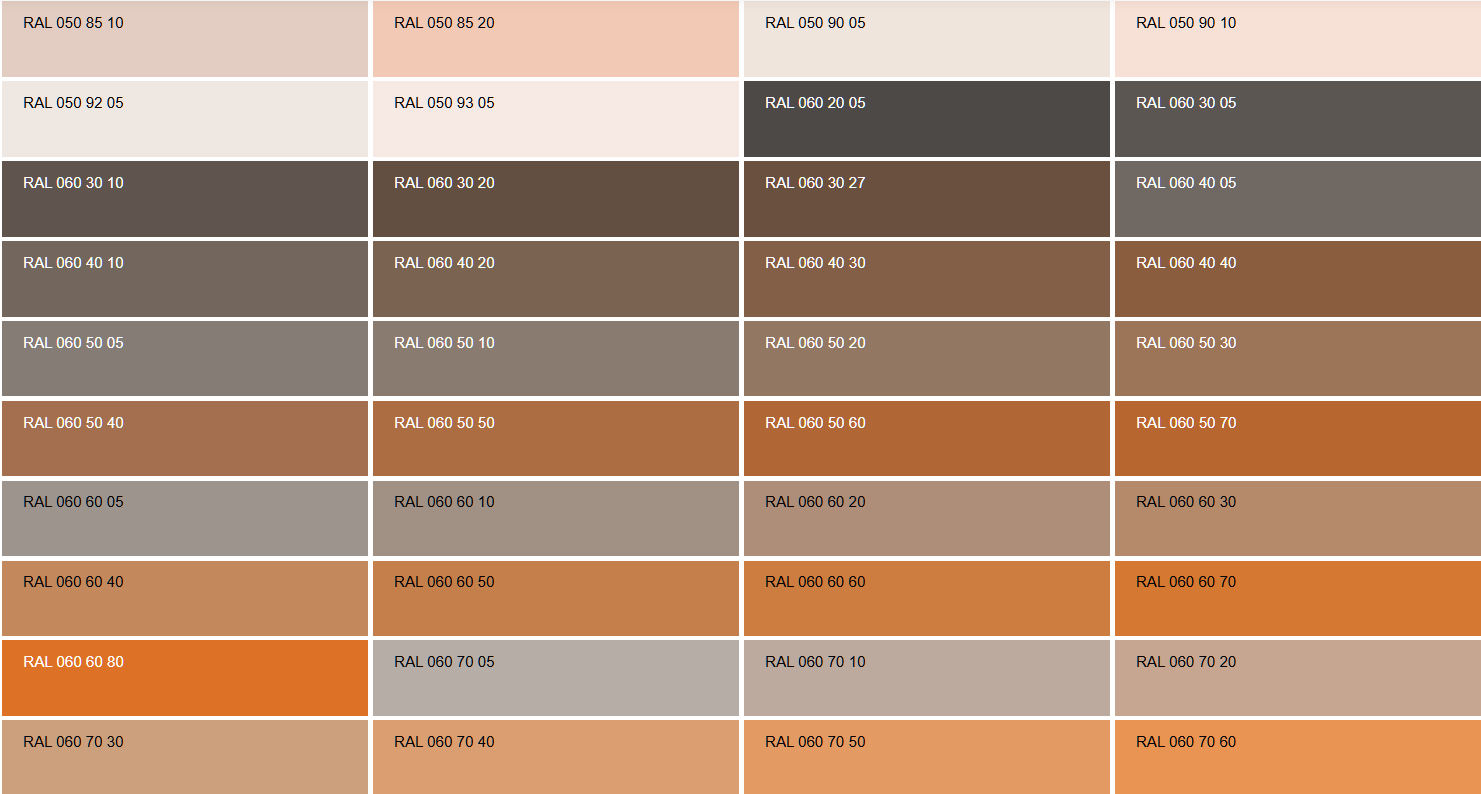 Для удобства работы архитекторов и дизайнеров также предлагаем вашему вниманию таблицу условного соответствия цветов палитры RAL DESIGN
